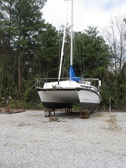 Ariel is resting as comfortably as a boat can on the hard.